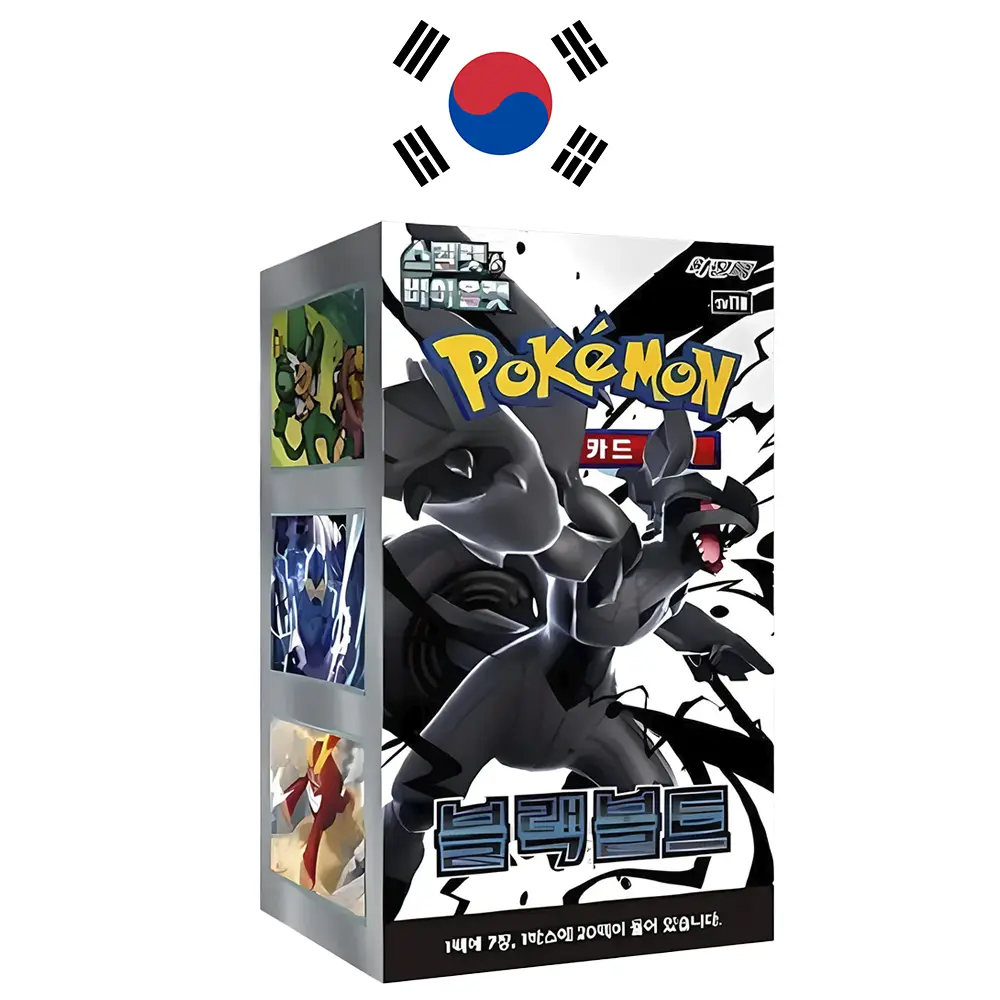 Caja Black Bolt Coreana – Pokémon TCG. Edición oficial de Corea del Sur basada en la expansión japonesa Black Bolt (SV11a – Zekrom), centrada en artes eléctricos, tonos oscuros y cartas EX con alto impacto visual. Un producto muy buscado por fans de Zekrom y coleccionistas que quieren variedad dentro del mercado asiático.