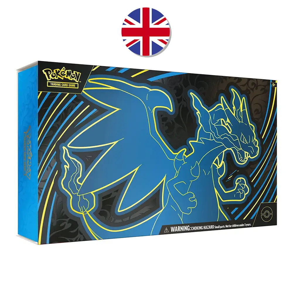 Caja Ultra Premium Llamas Fantasmales Inglés. Una edición de coleccionista exclusiva, inspirada en Mega Charizard X y las Megaevoluciones más emblemáticas del universo Pokémon. Esta versión en inglés ofrece un diseño premium y una experiencia de apertura única para verdaderos fans.