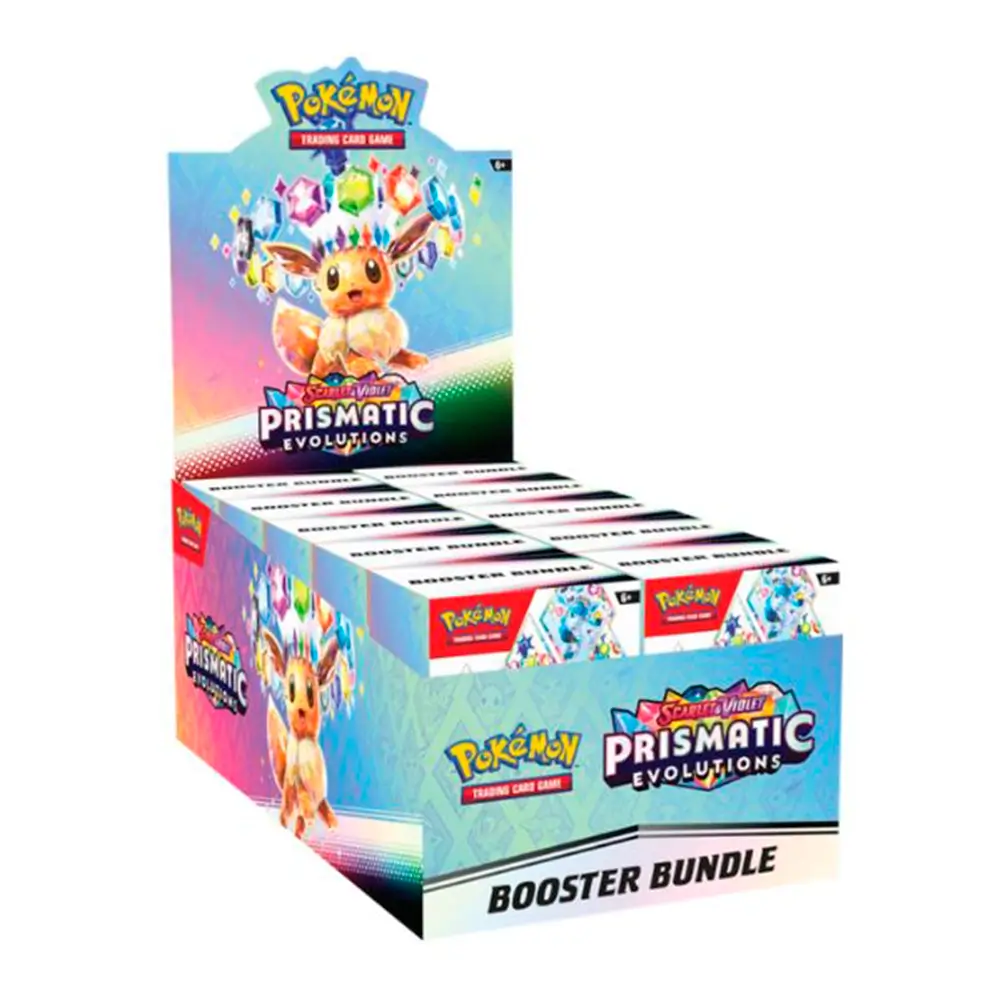[RESERVA] Display Booster Bundle – Prismatic Evolutions (Versión Inglés). Caja totalmente sellada que incluye 10 Booster Bundles oficiales de la expansión Escarlata y Púrpura: Evoluciones Prismáticas.